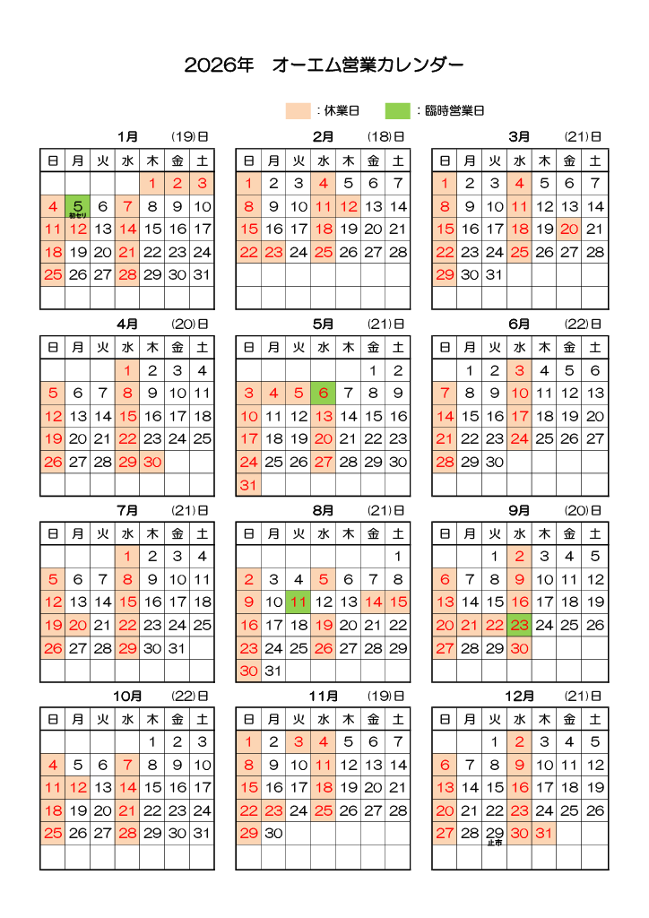 営業カレンダー